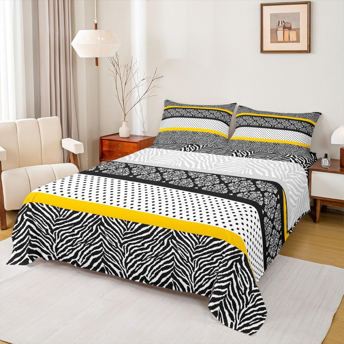 Package Include:1 x fitted sheet,1 x flat sheet,Pillowcase; Our high quality designs match any decor. High Quality Fitted Sheet Set Pattern Bedding Set, simply decorating your rooms any time you want, bringing you fresh feel for year round use. Polyester: Made from polyester microfiber, the sheet set offers strength, anatural resistance to shrinking and a noticeably soft hand feel. Size Information: Twin size 3pcs: 1 Fitted Sheet 39"W x 75"L x 16"H, 1 Flat Sheet 66"W x 96"L, 1 pillowcase 20" x 30". Full size 4pcs: 1 Fitted Sheet 54"W x 75"L x 16"H, 1 Flat Sheet 81"W x 96"L, 2 pillowcase 20" x 30". Queen size 4pcs: 1 Fitted Sheet 60"W x 80"L x 16"H, 1 Flat Sheet 90"W x 102"L, 2 pillowcase 20" x 30". King size 4pcs: 1 Fitted Sheet 78"W x 80"L x 16"H, 1 Flat Sheet 90"W x 106"L, 2 pillowcase 20" x 36". Personalize your bedroom: Beautiful design and colorful print, makes your bedroom unique and brings you a wonderful dream. Washing instructions: Machine wash separately in cold water,hang dry,do not bleach. Occasion: The soft Fitted Sheet bedding sets designed for Children ,Adult, Men, Women, Teens. This Fitted Sheet set is also suitable for full seasons, Spring, Summer, Autumn and Winter. You also can order it for your family and friends.