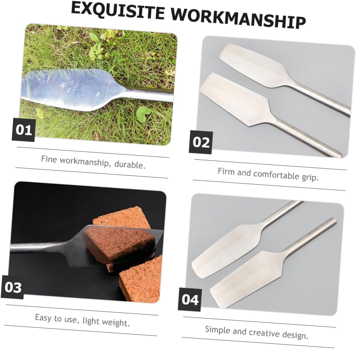 Package List 1 x concrete trowel Features - Color: Silver metal concrete trowel -Material:Stainless steel flat brick trowel - Size: 42.00X8.30X2.50cm/16.51X3.26X0.98in flooring tools - Non-stick flat-head , allowing you to easily obtain , joints, edges and fixation drywall trowel. - Our stainless steel concrete trowels are designed for leveling, spreading and shaping cement, plaster and concrete tools. - The brick trowel is made from , sturdy materials, strong, one-piece forging, durable for heavy duty trowel. - The ergonomics of the handle enables you to have a comfortable hand feeling, no need to pay much efforts masonry tools. - Excellent workmanship, will not easy to deform or break, for daily construction, bringing you satisfying using experience drywall tool.Goods Descriptionspades for digging workmanship, suitable for daily construction work.stainless steel concrete trowel This trowel adopts long handle design, can meet your different requirements and make your installation work easier, and profitable.bricklaying trowel The multifunctional brick trowel is a for manual concrete work