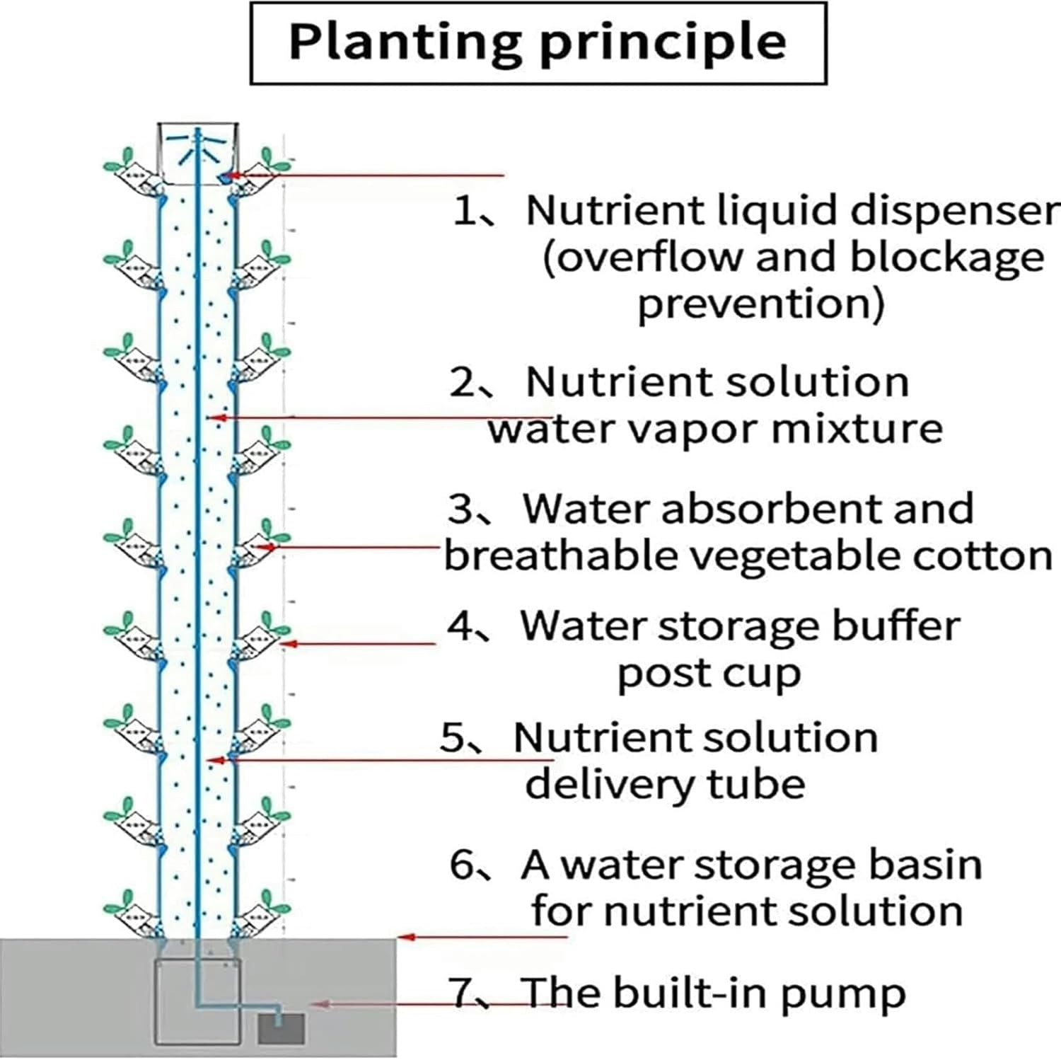 This hydroponic site grow kit produces high-quality leafy vegetables that are more nutritious and better-tasting than soil-gardened produce because oxygenated water and nutrients are delivered directly to the roots. you can observe the growth of vegetables at any time. From germination to seedling, and finally ripening, record each process of your own planting. In the family, you can also grow with your child and study how to grow healthy vegetables. Product Specification Product name: 45-hole column hydroponic tower Color : White Material: Food-Grade ABS Hole Size: 60mm Capacity of water: 30L Product size: 42x42x154cm Application: Home, greenhouse, garden, office, store, hotel Planting: Lettuce, strawberry 45 Holes Grow System: So will it will saving about 90% water than the tradition planting way.Also this is soilless cultivation, Just need the water and plant nutrient solution, It can realize green planting without pollution. It ca