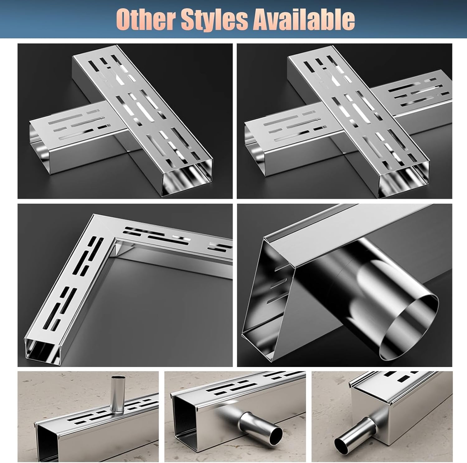 Are you tired of dealing with standing water on your porch, deck, or landscaped areas after heavy rains? Our premium trench drain system is designed to effectively channel excess water away, ensuring your outdoor spaces remain safe and dry. Crafted from durable 304 stainless steel, our trench drain combines strength with a sleek design. With a variety of sizes available, including 100 cm (39.37 inches) in length and grate hole widths of 4 mm (0.157 inches), this drainage solution is optimized for efficient water flow. The material thickness of 1 mm (0.039 inches) provides reliable performance, making it perfect for both residential and commercial settings. **Key Features:** - **Sleek and Slim Design:** Our trench drain features a slim profile that blends seamlessly into any outdoor environment, enhancing aesthetics while providing functionality. - **Detachable Grate:** The easy-to-remove grate allows for simple cleaning, effectively removing mud and debris to maintain optimal drainage. - **Customizable Sizes:** Available in various dimensions to suit your specific needs, ensuring a perfect fit for any area. - **Hassle-Free Installation:** No screws or bolts are required; simply use tape to secure the drain in place for quick and easy setup. **Usage Scenarios:** Imagine a rainy day where your patio or deck remains completely functional, free from puddles or flooding. Whether you're hosting a barbecue or enjoying a quiet evening outdoors, our trench drain ensures that your space stays dry and enjoyable. **Package Options:** Choose from 1, 3, 5, 7, or 9 drain channels and grates, complete with installation tape for your convenience. Upgrade your outdoor drainage solutions today and experience the difference in maintaining a dry, safe environment. With our trench drain, you can take control of water management while enhancing the beauty and utility of your outdoor spaces.