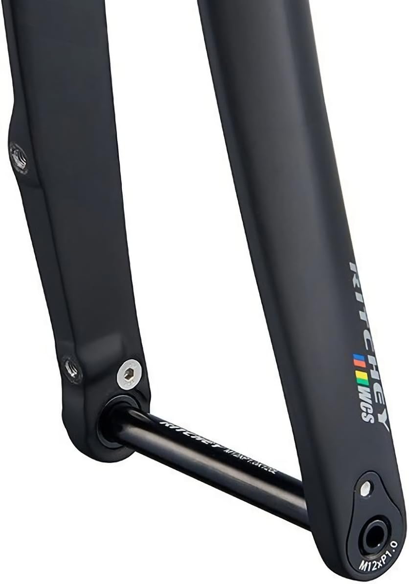 Experience superior performance and cutting-edge engineering with the Ritchey WCS Carbon Road Disc Fork - the ultimate choice for serious road cyclists seeking optimal control, lightweight efficiency, and sleek aesthetics. Crafted from full monocoque carbon construction, this fork offers exceptional strength-to-weight ratio, weighing just 400 grams including the 12mm thru-axle, making it ideal for competitive racing and endurance rides alike. Materials & Construction: Constructed from high-modulus carbon fiber, the Ritchey WCS Carbon Fork features a full monocoque design that ensures maximum durability and vibration dampening. Aluminum dropouts provide secure wheel integration while maintaining overall weight savings. Its matte black UD finish adds a sophisticated, understated look that complements any bike build. Performance & Engineering: Designed with a 45mm crown rake, this fork ensures precise steering responsiveness and stability at high speeds. The integrated crown race simplifies installation and enhances steering precision. The fork's load dissipation technology minimizes stress on the crown, increasing longevity and maintaining optimal performance over time. Compatibility with tires up to 30c wide and disc brake setups up to 160mm rotor size guarantees versatile use across various road conditions. Components & Technology: The flat mount disc brake compatibility facilitates clean, aerodynamic cable routing and exceptional braking power in all weather conditions. The 12x100mm thru-axle provides a rigid connection between the fork and wheel, ensuring accurate tracking and enhanced steering confidence. The straight steerer tube (300mm) is compatible with integrated or traditional headsets, offering versatile installation options for a wide range of road bikes. Style & Use Case: Designed for endurance, racing, and road builds, the Ritchey WCS Carbon Road Disc Fork delivers a sleek aesthetic combined with high-performance functionality. Its lightweight