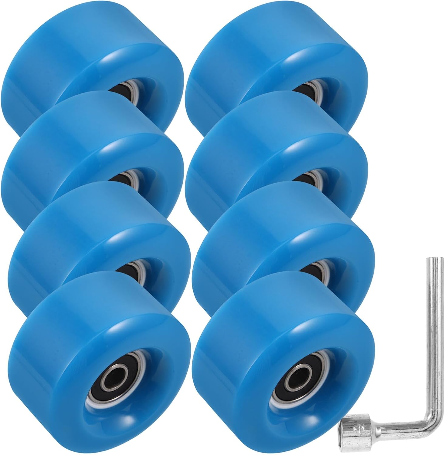 Package Include 8 skate wheels 1 x wrench Characteristics -It's fit: designed to fit skaters of all ages, these wheels are the choice for anyone looking to upgrade their skating gear roller skate wheels -Multifunctional use: these wheels are designed to be used as replacements for both inline skates and double row roller skates, offering great flexibility double row skates accessories -Pu material: the wheels are made from pu material, providing excellent durability and a smooth skating experience -Color:Blue -Size:5.80X5.80X3.00cm/2.28X2.28X1.18in -Quick and easy replacement: the wheels come with all necessary installation accessories, making it easy to replace your old wheels and get back to skating replaceable wheels for scooter -Product Info:Ice skates do not glow wheel -Multiple combinations: available in various sets, these wheels are ideal for replacing all the wheels on your skates, ensuring consistent performance skate wheel accessories -Material:Pu,ironGoods Informationskateboard wheels Designed for outdoor roller skating, these quad skates feature durable PU wheels that do not light up, ensuring a consistent performance.roller skate replacement The double row configuration offers excellent balance and maneuverability, making them suitable for recreational skating, fitness routines, or casual outings.skate roller wheels Enjoy the freedom of skating with these reliable skates