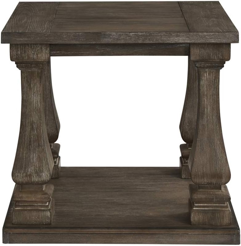 Signature Design by Ashley Johnelle Rectangular Cocktail Table, 54"W x 40"D x 18"H, GrayHomey. Hearty. Heavenly hued. Luring with a distressed weathered gray finish and square baluster legs set on a broad lower shelf for great presence, this coffee table is sure to make your homestead feel that much more like home. The look is beautified with elm veneers and a framed and plank-effect tabletop for a richly crafted masterpiece made for years of satisfaction.Signature Design by Ashley Johnelle Modern Country Rectangular End Table, Weathered BrownHomey. Hearty. Heavenly hued. Luring with a distressed weathered gray finish and square baluster legs set on a broad lower shelf for great presence, the Johnelle end table is sure to make your homestead feel that much more like home. The look is beautified with elm veneers and a framed and plank-effect tabletop for a richly crafted masterpiece made for years of satisfaction. With a wide variety of styles and materials, accent tables can provide storage in a living room, give guests a spot to rest their drinks, and add subtle drama to your decor by presenting a place for artwork, a lamp or a plant. we have a wide selection of accent tables and occasional tables, from rustic farmhouse designs to modern openwork styles. They come in a variety of sizes, too, so you will find one that fits just where you need it.