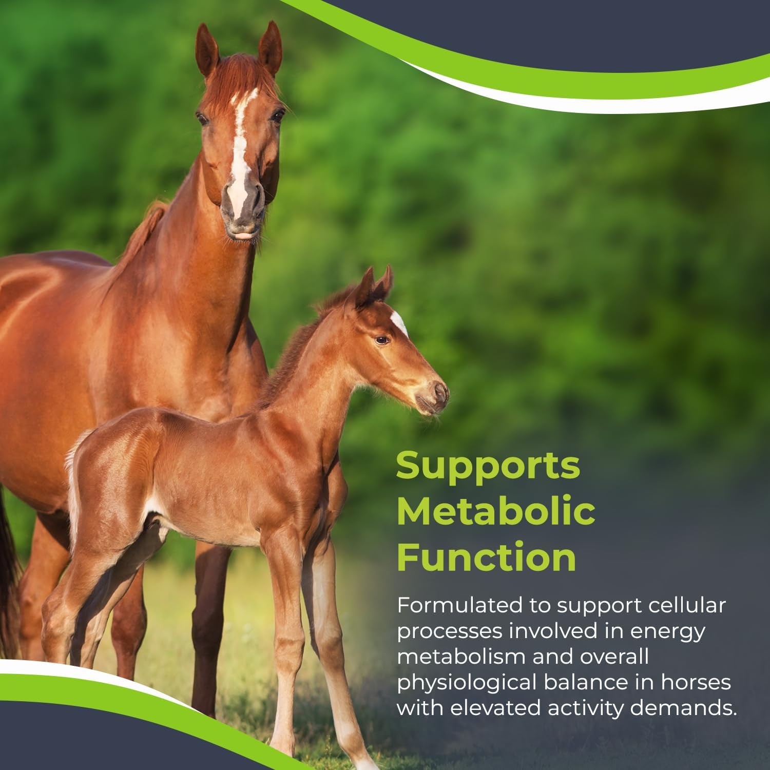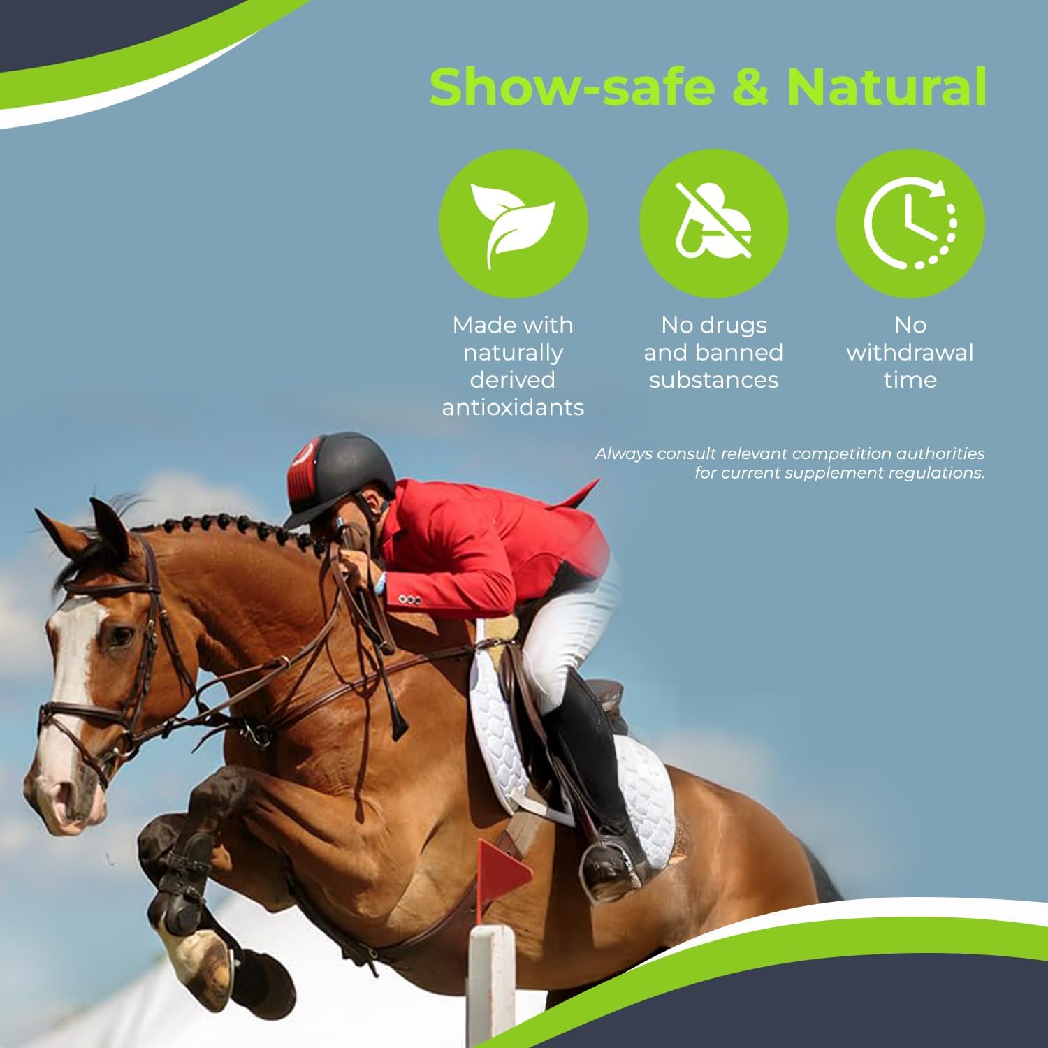 RedoxEq – Antioxidant Support for Active Horses RedoxEq is an antioxidant animal health supplement formula designed to support normal cellular balance and metabolic resilience in active horses. Training, competition, transport, and other physical demands can increase oxidative stress, a common but undesirable consequence of elevated metabolic activity. Oxidative stress occurs when the production of metabolic byproducts exceeds the body’s ability to neutralize them through its natural antioxidant systems. Supporting antioxidant status is an important part of maintaining cellular integrity, muscular comfort, and overall wellness in horses subjected to regular physical exertion. RedoxEq provides a concentrated blend of naturally derived antioxidant compounds that help support the body’s normal defenses against oxidative stress and contribute to healthy cellular function during periods of increased metabolic demand. RedoxEq contains no drugs and no banned or controlled substances. There are no ingredient-related withdrawal times when used as directed. Always consult the applicable competition authority for current supplement regulations.